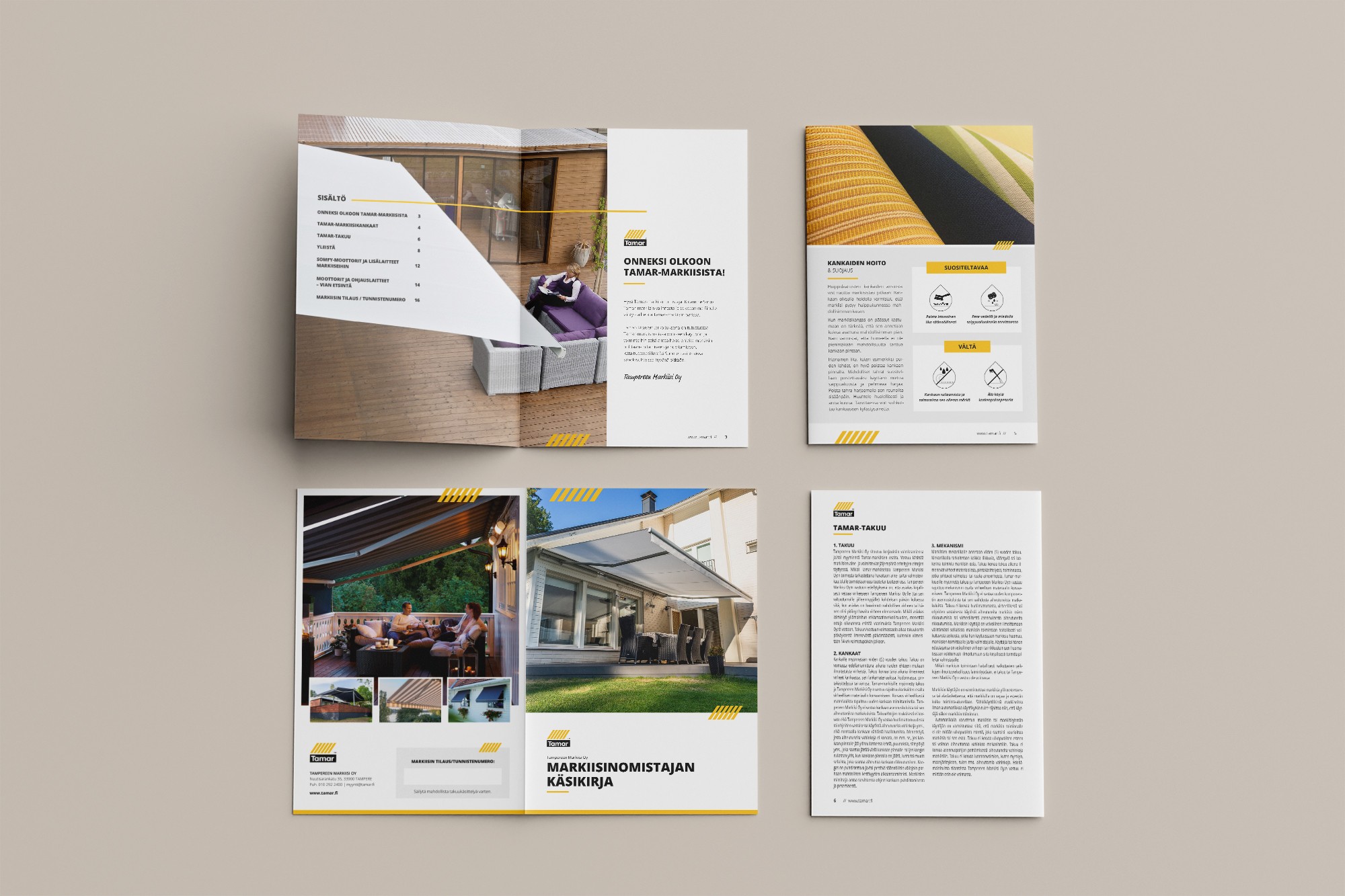 Markiisin omistajan käsikirja kaipasi vuosihuoltoa. Uudistimme laatumarkiisin ostajalle tärkeän oppaan.