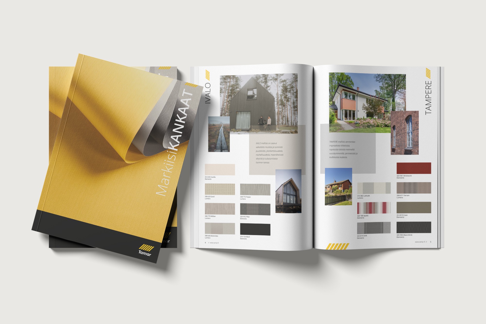 Suunnittelimme 50-vuotisjuhlavuodelle tyylikkään ja laadukkaan kangasmallistokansion esitteineen.